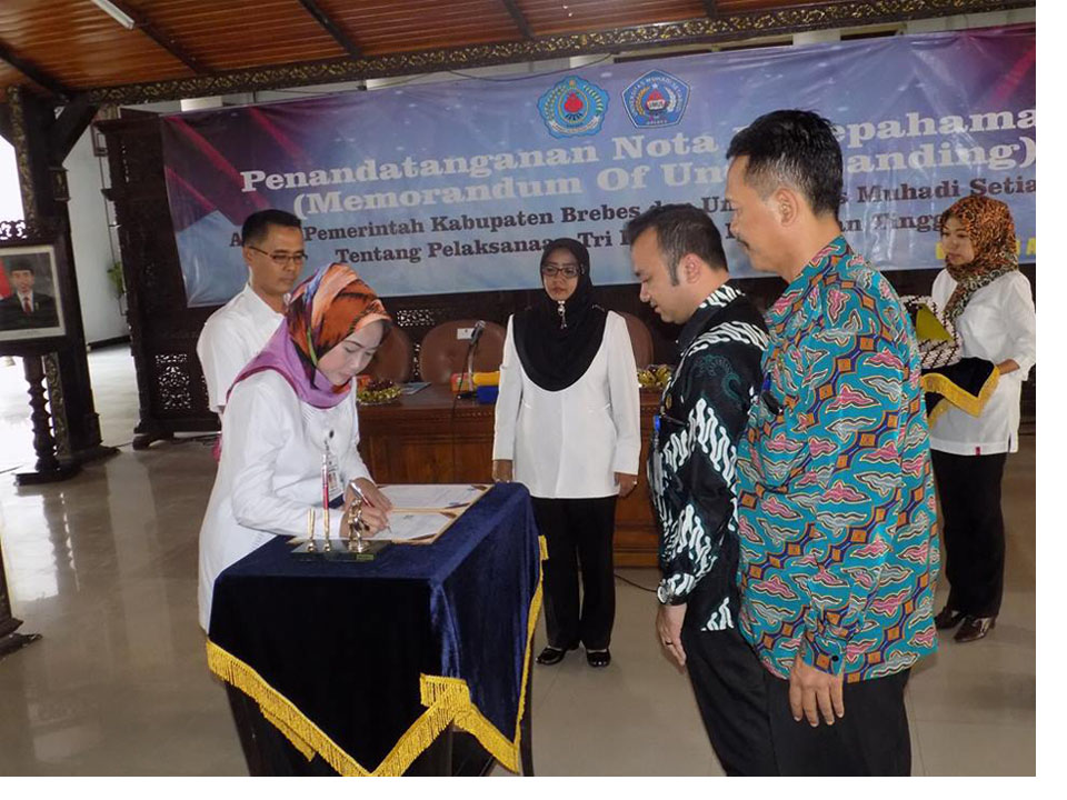 Rabu, 8 Agustus 2018 bertempat di Pendopo Kabupaten Brebes, Pemerintah Kabupaten (Pemda) Brebes dan Universitas Muhadi Setiabudi (UMUS) menandatangani nota kesepahaman ...Baca Selengkapnya